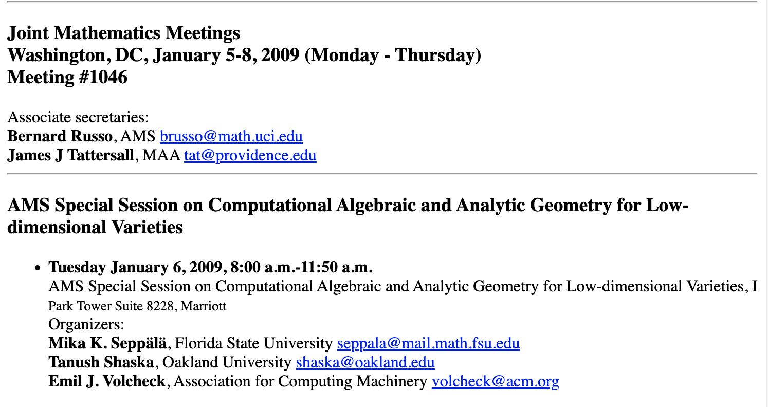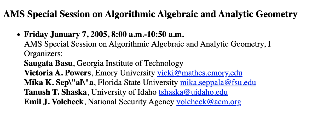 Organizers: S. Basu,V. Powers, Mika K. Sepala, T. Shaska, E. Volcheck